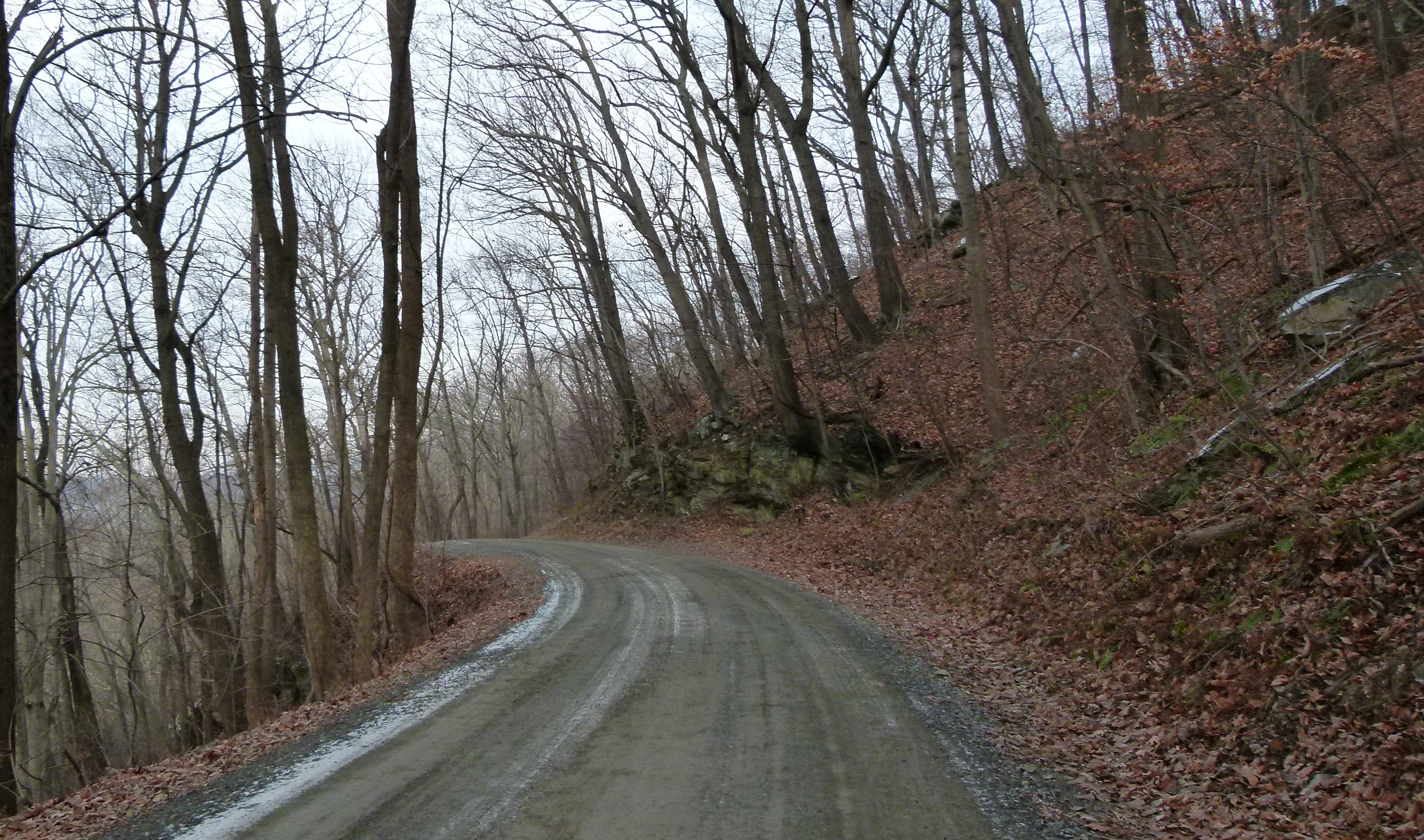 Furnace Mountain road starts as a two-lane blacktop. It quickly turns into a 1.5 lane wide gravel road that winds through some beautiful woods and small farms.